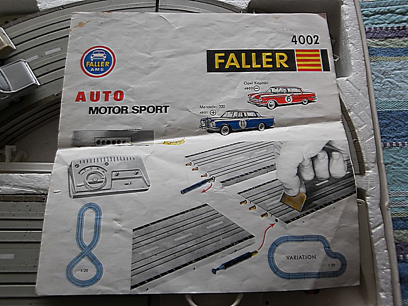 Heute hatte ich einen guten Grund zum jubeln, denn ich habe ein Teil meiner Jugend wieder bekommen. Es handelt sich dabei um eine Faller AMS Startpackung Nr. 4002. Mit dieser Packung habe ich im Jahr 1964 mit Faller AMS angefangen. Nur hatten meine Autos damals eine andere Farbe, so war der Mercedes in blau und der Opel Kapitän in rot.