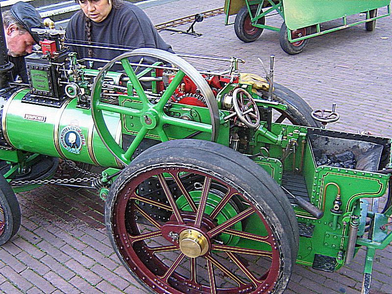 Bereits vor der Halle dampfte es gewaltig, denn ein Mini Locomobil wurde fahrfähig gemacht. Auch eine Dampfeisenbahn war zu sehen. Direkt vor dem Eingang war ein großes Wasserbecken aufgebaut und in einem großen Sandberg wurden LKW`s und Baufahrzeuge gezeigt.