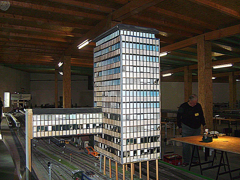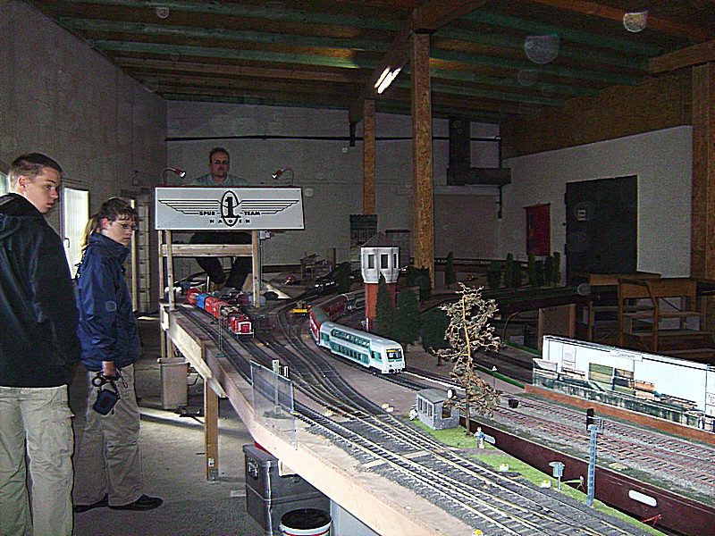 Beginnen möchte ich meine Anlagen Vorstellung mit der Spur 1 Anlage des Spur 1 Team Hagen. Im April, beim letzten BW Fest, war nur ein einfaches Oval fertig und heute in nur einem halben Jahr war die ganze Anlage fertig und konnte befahren werden. Es fehlt nur noch die Ausschmückung. Das was man heute sehen konnte verschlägt einem glatt die Sprache. Große Radien. lange Züge, das muß man einfach selber gesehen haben, einfach nur erste Sahne.