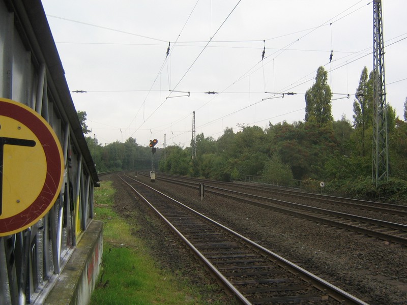 ![]() Blick in Richtung Duisburg, die Schienen auf der linken Seite sind für den Güterverkehr |