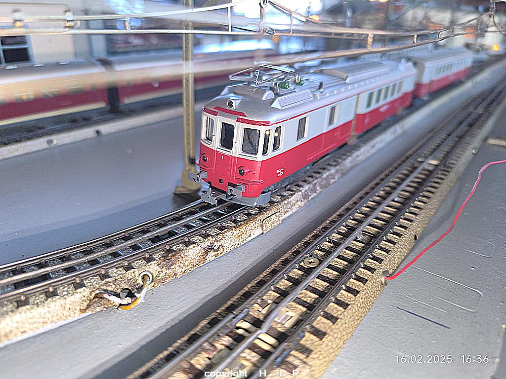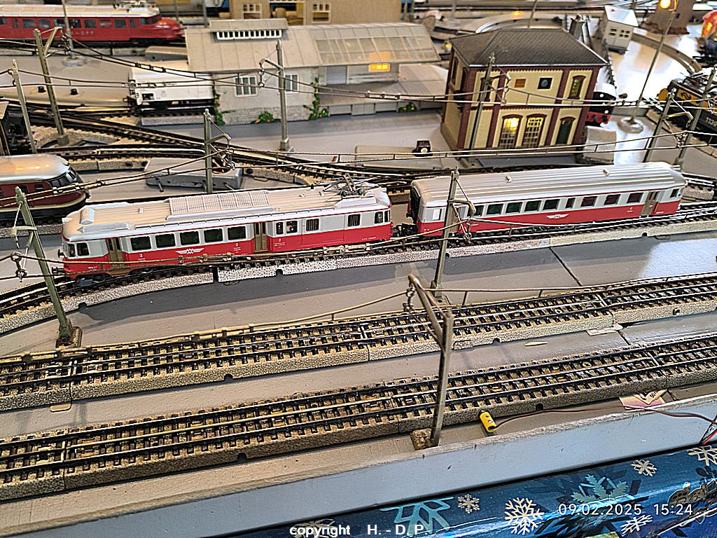 Der 2. Spieltag und die noch folgenden stehen unter dem Motto " Triebwagen und Triebzüge aus dem In - und Ausland zu Gast in Heinhausn Teil 2 " Zu sehen sind Fahrzeuge der Firmen Märklin, Hag und Primex.