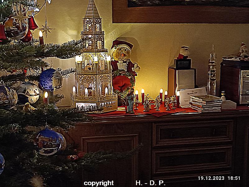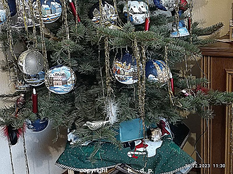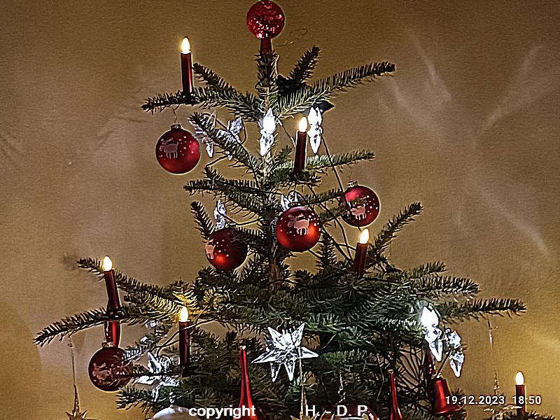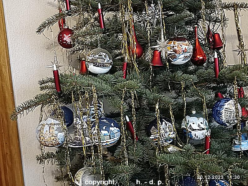 Leider haben wir auch in diesem Jahr wieder nur einen Baum von 2 m Höhe bekommen können und da muß natürlich noch die Spitze gekürzt werden damit die Kugelspitze nicht in der Luft hängt und dann bleiben auch wieder nur ca. 1,70 m für den Baum übrig. Jetzt hoffe ich das es im Jahr 2024 endlich wieder eine Blaufichte geben wird die vom Fußboden bis unter die Decke reicht, denn ich liebe nun mal die großen Blaufichten.
