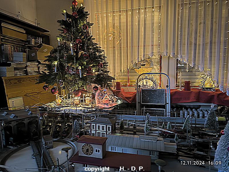 Am 11.11.2024 habe ich damit begonnen mein Spielzimmer weihnachtlich zu schmücken. Ihr werdet jetzt wohl fragen warum ich schon so früh angefangen habe, aber das ist schnell erklärt. Ich bin jetzt 76 Jahre alt und da geht alles langsamer als noch mit 66 Jahren. Außerdem kann ich sehr schlecht Laufen und da ist es mit Leiter rauf, Leiter runter nicht mehr so einfach wie früher. Früher habe ich mein Spielzimmer in einem Tag fertig gehabt, in diesem Jahr hat es 3 Tage gedauert und morgen muß ich noch aufräumen. Aber solange ich noch kriechen kann werde ich das auch weiter machen, denn Weihnachten, bzw. die Vorweihnachtszeit ist für mich die schönste Zeit des Jahres.