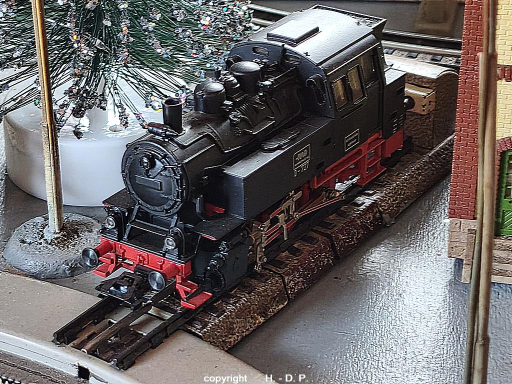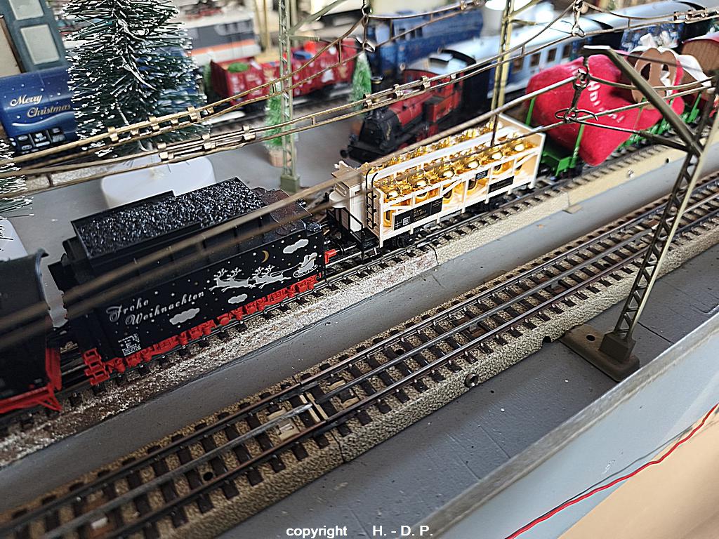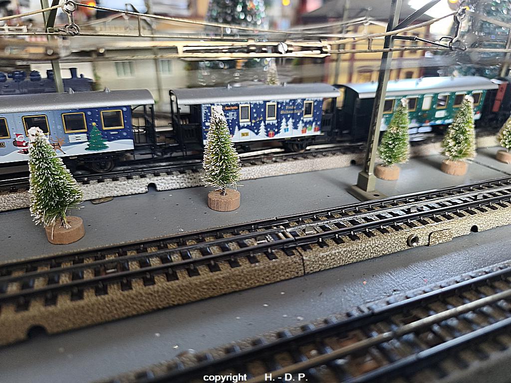 Das Fest steht vor der Tür und hat schon leise angeklopft, so das es an der Zeit ist die Weihnahtszüge, bzw. Züglein um Heinhausen auf die Reise zu schicken. Ein Züglein besteht aus einer T 3 in weihnachtlichem Gewand und das zieht 3 Personenwagen und einen wohl mit Glühwein gefülltem Kesselwagen, damit die Ausflügler immer in guter Stimmung sind und der Alkoholspiegel nicht sinkt.