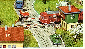 Die Firma Faller, immer für eine Überraschung gut, brachte im Modelljahr 1970 etwas was sich viele Modellbahner schon lange gewünscht hatten, nämlich die Verbindung Schiene Straße. So erschien im Katalog 1970 erstmals eine Autoverladung. Nun konnte man über eine einspurige Straße mit einem Auto, PKW oder auch LKW auf einen Niederbordwagen fahren. Ein einfaches aber geniales System, das schnell sehr viele Freunde fand.
