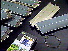 Wenn Sie mit den vorgefertigten Straßenteilen arbeiten möchten, brauchen Sie diese nur wie Modellbahnschienen zusammen stecken. Die stabilen Kartonstücke passen recht gut zusammen, so dass man recht zügig vorankommen kann. In die vorhandene Nut verlegen Sie nun den Spezialdraht und kleben dann die hauchdünne Fahrbahnfolie in Straßenfarbe darüber. Schon ist Ihre erste car system Anlage fertig.