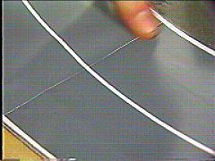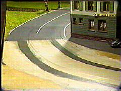 Zuerst fräsen Sie eine Nut in die Fahrbahn die dann den Spezialdraht aufnimmt, fixieren Sie den Draht mit Tesastückchen und spachteln Sie dann die Nut mit der Faller Spezialspachtelmasse zu. Achten Sie darauf, dass der Draht selber nur hauchdünn bedeckt sein darf, denn sonst können die Autos die Führung verlieren. Anschließend brauchen Sie Ihre Straße nur noch mit der Spezialstraßenfarbe zu streichen, bzw. rollen. Mit einer kleinen Schaumstoffrolle geht es besser und gleichmäßiger als mit einem Pinsel. Auch die Faller Straßenfarbe würde ich empfehlen, da Sie nach dem trocknen einen guten und griffigen Untergrund bietet.