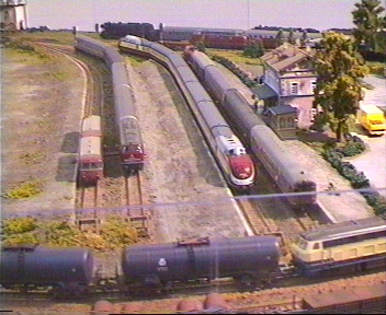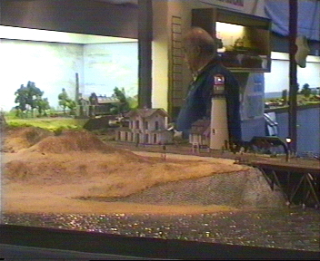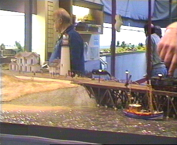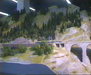 Meine Meinung zu den gezeigten Anlagen ist die, dass es in früheren Jahren mehr Anlagen nach meinem Geschmack gab. Am Besten gefiel mir die Anlage vom Modellbahu-Team-Köln. Hier wurde ein Stück Schweizer Bergwelt gezeigt , das uns fast umgehauen hat. Der Eindruck war gewaltig und wir konnten uns nicht satt sehen an den vielen kleinen Details, die alle sehr sauber gebaut waren. Da wir noch vor der offiziellen Öffnung in der Halle waren, konnten wir alles in Ruhe ansehen. Ebenfalls sehr sehenswert war eine kleine runde Anlage von einem englischen Club, deren Motiv eine Waldbahn war. Auch hier gab es unzählige bis in das kleinste nach gebaute Details zu bewundern. Ein Club hatte seine Modulanlage vollkommen falsch plaziert. In ca. 1,60 m  Augenhöhe ???? stand diese Anlage so hoch dass ich mit meinen zierlichen 1,70 Körpergröße nichts erkennen konnte. war dass etwa eine Anlage nur für Riesen ??? oder war sie etwa Jugendgefährdend ??? Ich weis es nicht, nur fand ich so etwas unmöglich dass wenn Kinder diese Anlage sehen wollten nur den Boden von unten sehen konnten.