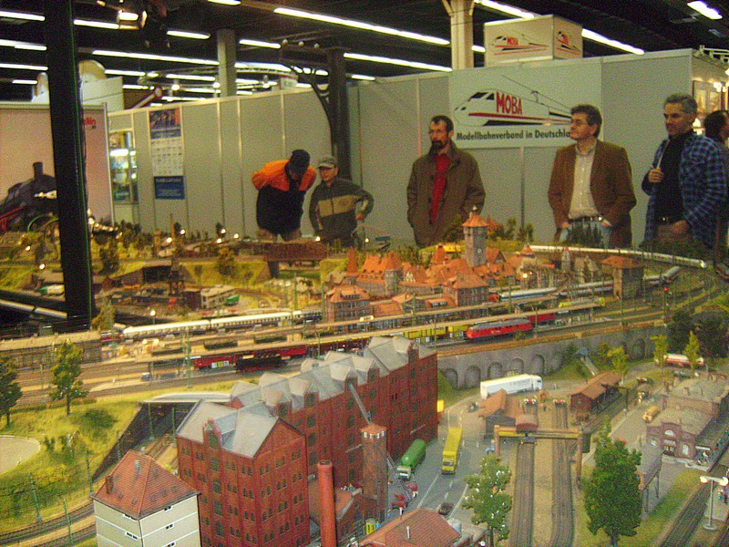 Dann habe ich mir die Auslagen beim Märklinstand angesehen und die Anlagen. Zu sehen gab dort einige Anlagen und ein Diorama von Trix mit den Stahlwerks Gebäuden. Ach eine kleinere LGB Anlage war dort zu sehen. Dann ging es weiter zu Fleischmann und den anderen Bekannten Firmen, bevor ich mir die Anlagen angesehen habe.