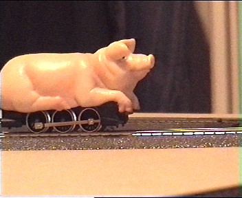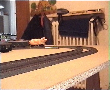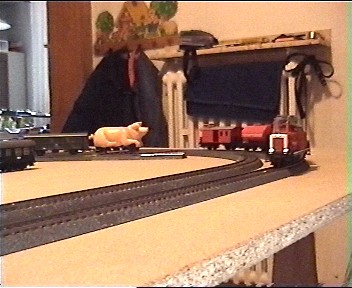Die Schweinelok ist das letzte Stück der7 Loks aus der Schul AG. Ich wollte einige Delta Loks auf die MS einstellen, aber 6 Loks waren geklaut, nur dieses Glücksschwein blieb übrig, ob die Diebe wohl "Kenner" waren ?? Wie dem auch sei das Deltaschwein konnte ich noch auf die MS einstellen. Leider war in der Datenbank die Artikel Nr. 30455 nicht enthalten, obwohl da alle Delta Loks aufgeführt sein sollten. Also habe ich diese Lok auf die Art. Nr. 30000 eingestellt, weil diese auch keinerlei Sonderfunktionen hat, das war die Adresse 78. Doch zu meiner großen Überraschung bewegte sich die Lok keinen mm. Erst als ich die Lok auf Adresse 72 eingestellt und unter Adresse angemeldet hatte lief sie einwandfrei und besser als mit dem Deltagerät. Woran das gelegen hat weiß ich nicht und andere Loks konnte ich bisher mangels Masse (geklaut) leider noch nicht probieren. Auch der Wechsel zwischen den Loks geht schnell und einfach. Ein leichter Druck auf den Knopf mit dem Loksymbol und eine leichte Drehung an dem roten Knopf und schon kann die neue Lok angesprochen werden. Die Handhabung der MS ist schnell gelernt und fast selbsterklärend, man benötigt nur eine geringe Einarbeitungszeit. Leider kann man mit der MS keine Weichen oder Signale schalten, was erst mit der noch nicht erhältlichen CS ( Central Station ) möglich sein wird.