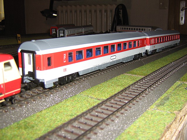 Vor einigen Tagen bekam ich meine 6 Piko Hobby IC Wagen, die natürlich sofort ausprobiert werden mußten. Also die Spielbahn aus der Ecke geholt, auf die Böcke gestellt und die neuen Wagen ausgepackt. Der erste optische Eindruck war einfach nur sehr gut. Die Wagen liefen alle superleicht mit ihren DC Achsen auf meinem C-Gleis. Egal ob gezogen oder geschoben sie haben alle Weichen, selbst die Bogenweichen, anstandslos durchfahren.