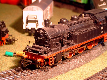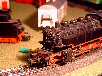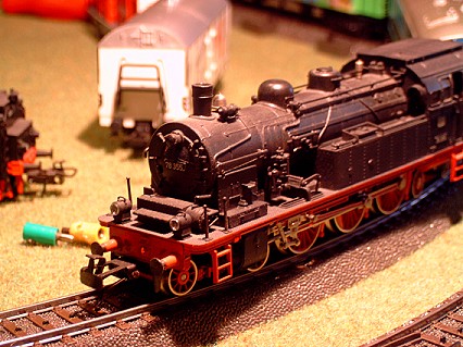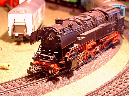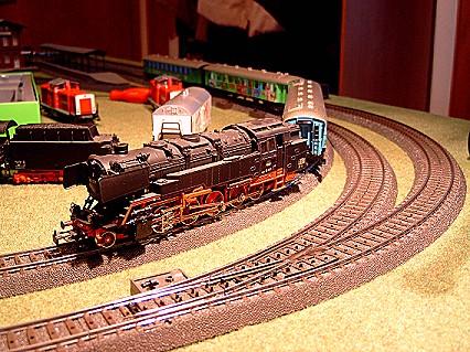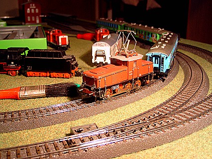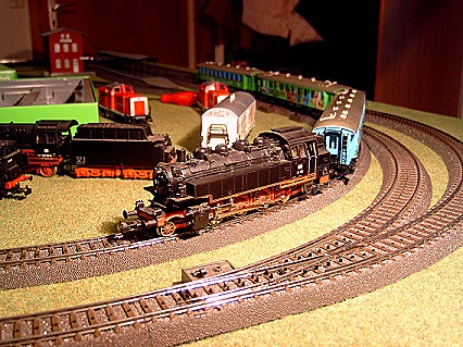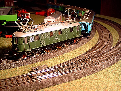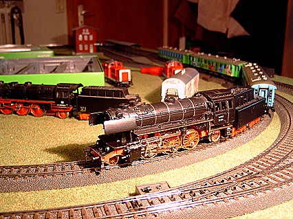 Und heute ging es weiter mit dem ausprobieren meiner analogen Loks. Es machte noch genau so viel Spaß als vor ca. 20 Jahren als ich meine Anlage abgebaut habe. Besonders schön war der "Sound" der E 44 und E 18. Leider habe ich keine Blechdonnerbüchsen drangehängt, weil die alle im Keller stehen und ich einfach zu faul war die rauf zu holen, aber auch so war der Sound klasse.