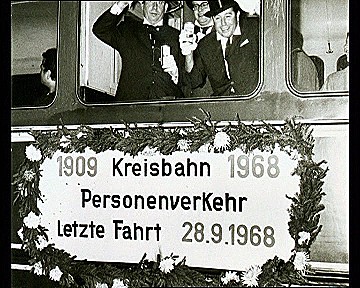 Ab 1962 kamen auch Dieselloks auf der Kreisbahn zum Einsatz und der Kohletransport stellt auch heute noch eine rentable Einnahmequelle für die Kreisbahn dar. Ab 1921 setzet man im Personenverkehr auch Triebwagen ein, die teilweise Eigenbauten der Kreisbahn waren. Den größten Boom erreichten die Kreisbahn nach dem 2. Weltkrieg durch die Hamsterfahrten, so wurden von 1946 bis 1949 7 Mio Menschen mit der Kreisbahn befördert. Ab 1953 gingen die Fahrgastzahlen stetig zurück, durch die zunehmende Motorisierung und ein stetig ausgebautes Busnetz im Kreis Moers, damit war das Ende des Personenverkehrs vorprogramiert. Als die Moerser Kreisbahn ( KMV ) 1967 in die Niederrheinische Verkehrs AG ( NIAG )aufging war das Ende bereits beschlossen und am 28.9.1968 wurde der Personenverkehr ganz eingestellt, bis dahin wurden insgesamt ca. 50 Mio Menschen befördert.