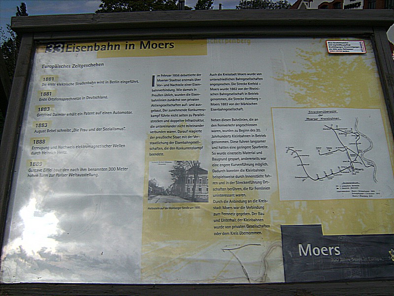 Der Eingang zum alten Kreisbahnhof Moers liegt dem Bahnhof direkt gegenüber, allerdings muß man heute einen weiteren Weg zurücklegen als im Jahre 1968, als der letzte Personenzug der Moerser Kreisbahn dort abfuhr. Es gab zwar noch einmal über eine kurze Zeit einen Sonderverkehr mit einen extra dafür angeschafften alten MAN Triebwagen, der für viel Geld saniert wurde, um dann nach kurzer Zeit wieder verkauft zu werden weil das Geld für eine anstehende Hauptumtersuchung leider fehlte. Das war im Jahre 2001. Seit dieser Zeit lag der Kreisbahnhof im Dornröschenschlaf und wurde von Gebüsch und Unkraut überwuchert, so wie auch die Gleise bis Neukirchen zugewachsen waren. Das wurde aber für den heutigen Tag mit sehr viel Aufwand wieder in Ordnung gebracht und die Strecke war in einem recht guten Zustand.
