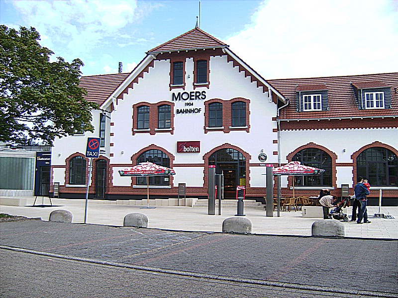 Am Bahnhof angekommen hatte ich doch noch viel Zeit und konnte so einige Bilder von dem neu restaurierten Bahnhofsgebäude machen, welches aber heute der Stadt Moers gehört und nicht mehr der DB. Der alte Bahnhof ist ein richtiges Schmuckstück geworden. Dagegen ist der Aufgang zu den Gleisen immer noch so, vorsichtig ausgedrückt, dreckig wie immer.