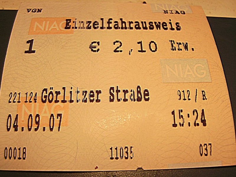 Am Mittag hatte ich bereits nach den Abfahrtszeiten gesehen und war natürlich überpünktlich an der Haltestelle. Der Bus sollte um 15:17 fahren, aber wie es wohl typisch ist, hatte er natürlich fast 8 Minuten Verspätung. Dann kam der Hammer, der Fahrpreis. Ganze 2,10 € für gerade einmal 3 Haltestellen durfte ich hinlegen. Hier der Fahrschein, damit man mir das auch glaubt.