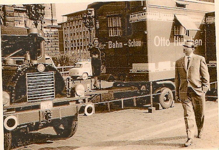 Im Jahre 1962 erfolgte der Umbau der Anlage auf das Fleischmann System, bei gleichem Gleisplan. Auch der Wagen wurde von außen verändert, der Holzaufbau wurde mit Metallplatten verkleidet. Damit fuhr Otto Hübchen bis zum Jahr 1969 durch die Lande. Hier auch noch 2 Bilder der Fleischmann Anlage