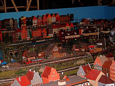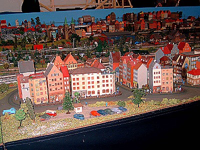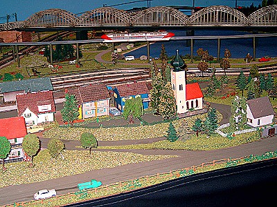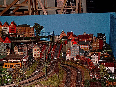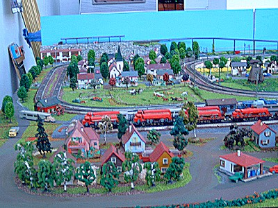 Die für mich persönlich schönste Anlage war die alte Märklin Anlage aus den 50/60er Jahren. Die viel zu kleinen Fallerhäuser und das alte Märklingleis mit durchgezogenem Mittelleiter war einfach nur klasse für einen Nostalgiker wie ich einer bin. Das einzige was bei dieser Anlage nicht wirklich alt war , waren die Autos. Man hatte alte unverglaste Wiking Modelle für das Car System von Faller umgebaut, was dieser Anlage einen ungeheuren Reiz gab. Viele dieser Autos kannte ich noch aus Kindertagen.