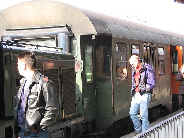 ![]() der Zug fährt ein aber ein Foto mußte sein, auch wenn ich dann noch hinter her laufen mußte, weil der Zug sehr weit durchfuhr |