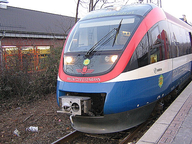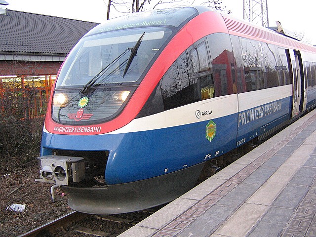 Zur Prignitzer Eisenbahn ist zu sagen das sie vor einigen Jahren die für die DB unrentabel gewordenen Strecken übernommen hatten und diese Strecken mit brandneuen Fahrzeugen und einem Ausbau, bzw. Verschönerung der Haltepunkte wieder auf Vordermann gebracht hat. Der alte DB Bahnhof Duisburg -Ruhrort steht immer noch und ist total verkommen, wogegen der Haltepunkt DU-Ruhrort der Prignitzer Eisenbahn neu gebaut wurde und wirklich blitzsauber ist, genau so wie die Züge, die ein wirklich modernes Aussehen und Inneneinrichtung haben Die letzten Züge der DB waren auf dieser Strecke die alten BR 515 die alleine von außen nur noch durch Rost zusammengehalten wurden, von innen gar nicht zu reden. Das da die Fahrgäste wegblieben ist wirklich nicht verwubderlich. Aber man kann deutlich sehen das die sogenannten "kleinen privaten" es besser können als die große DB