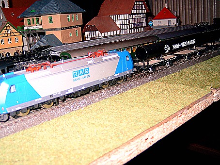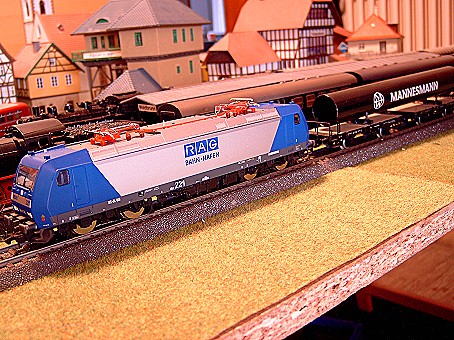 ![]() eine RAG BR 185 vor einem schweren Röhrenzug |