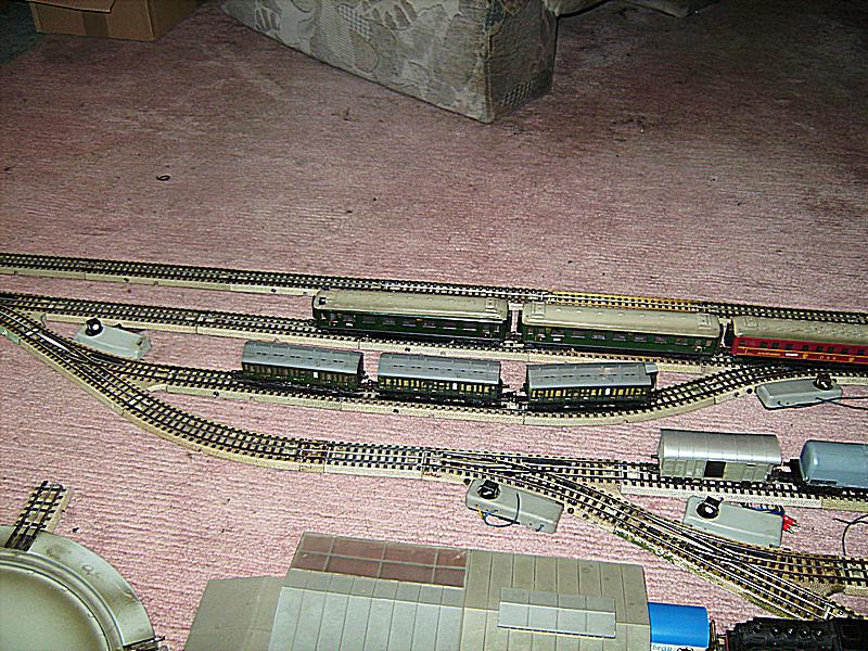 Ich habe natürlich auch noch Güterwagen ausgekramt und auf die Anlage gestellt um mir schon mal ein kleines Bild zu machen wie es einmal aussehen wird. Mich hat das Ergebnis überzeugt und es sieht fast so aus wie eine alte Märklin Anlage aus einem Gleisplanheft der 50er Jahre und so sollte es auch sein. Es ist natürlich keine Modellbahn nach heutigen Gesichtspunkten sondern eine Spielbahn aus den 50er Jahren, also viel Gleise und wenig Gebäude.