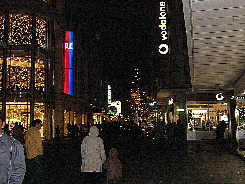 unter dem Weihnachtsbaum die ersten Buden mit Blick auf Peek & Cloppenburg