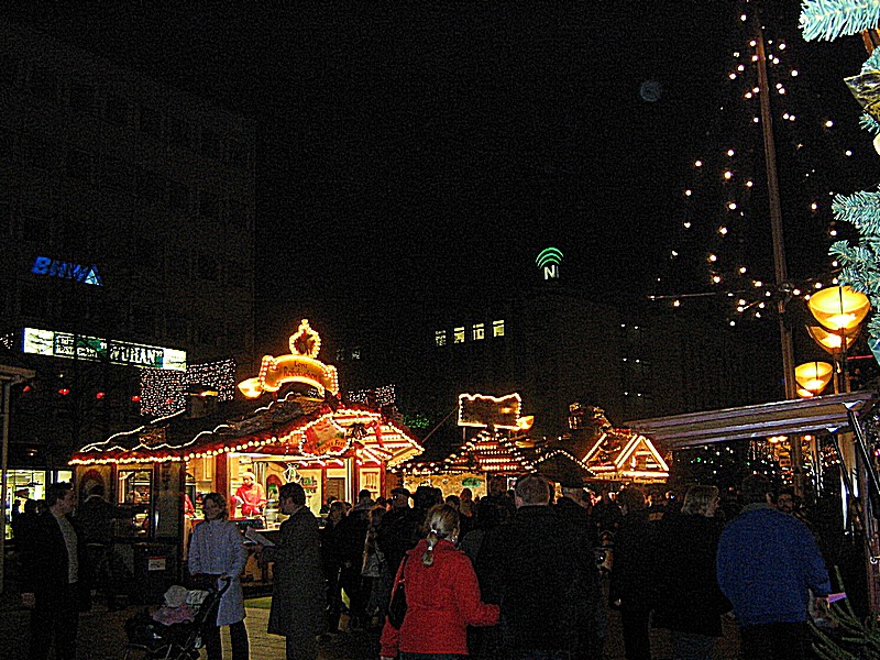 Ich war heute mit meiner Frau in Duisburg auf dem Weihnachtsmarkt. Die Duisburger Innenstadt war zum Bersten voll mit Menschen, alles drängte auf den Weihnachtsmarkt. Mit etwas Glück haben wir noch  einen Parkplatz im Parkhaus am Schwanentor bekommen.