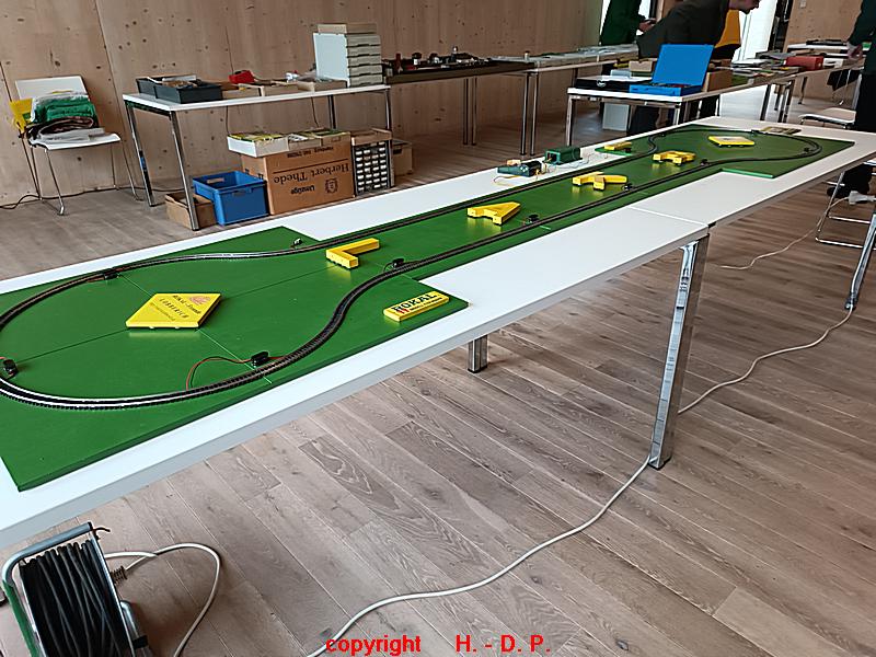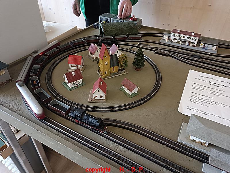 Anlagen waren 3 zu sehen und auf einer fuhr zu meiner großen Überraschung sogar eine dampfende Lok. Man kennt es ja von Märklin und auch anderen Firmen in H0, aber das es auch eine rauchende Dampflok von Rokal gab war mir neu, es kann allerdings auch sein das der Raucherzeuger nachträglich eingebaut wurde.