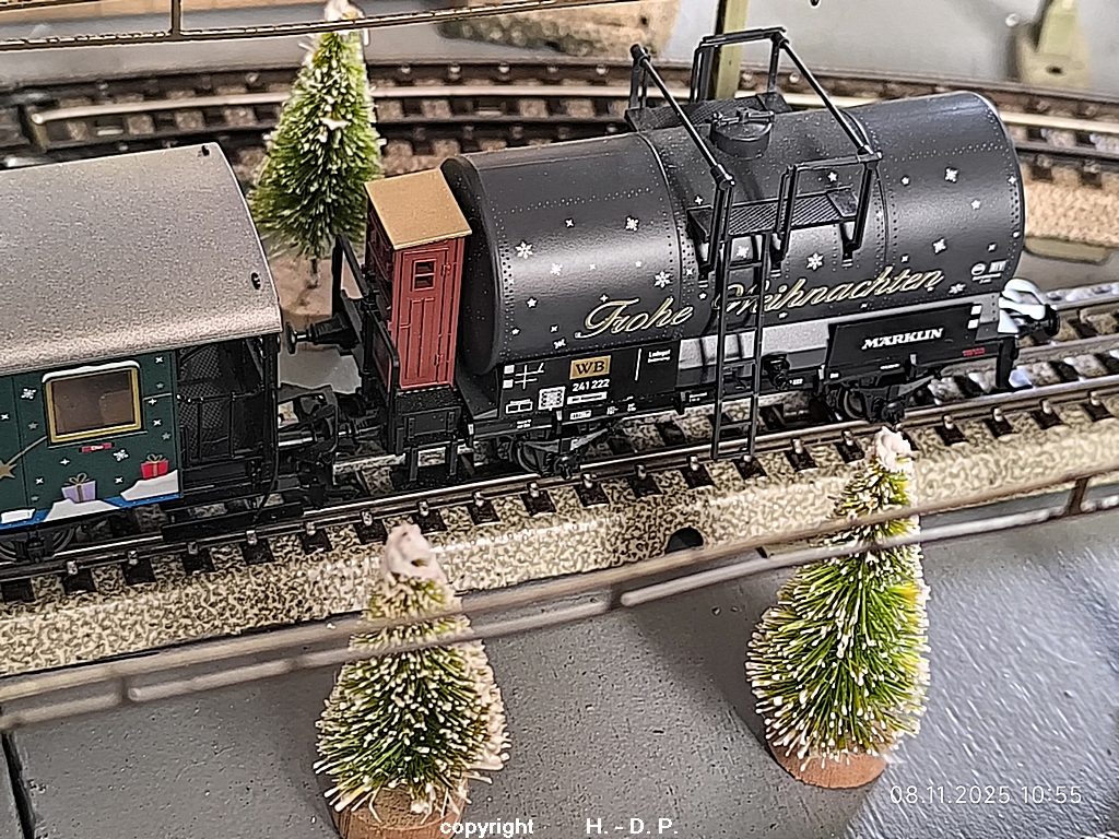 Ich gehe mal davon aus das der Kesselwagen hinter den Personenwagen mit Glühwein gefüllt wird, damit die Personen die mitfahren feucht fröhlich sein können, um nicht stock besoffen zu sagen.