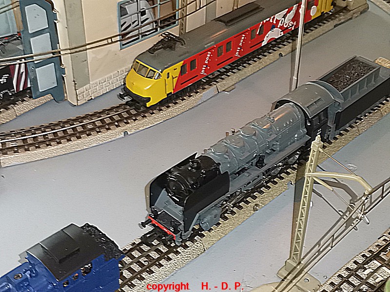 da waren unterwegs ein Zug gezogen von einer Piko BR 82 ein Zug aus Shell und Aral Kesselwagen, ein weiterer Zug gezogen von einer Märklin BR 50 mit Esso Kesselwagen und ein von einer GFN BR 55 gezogener Zug mit gemischten G Wagen auch aus der Märklin 4500 G Wagen Serie.