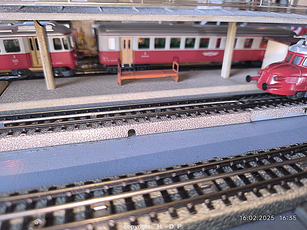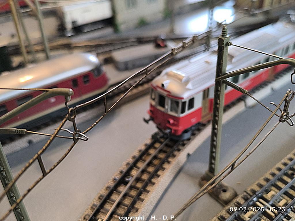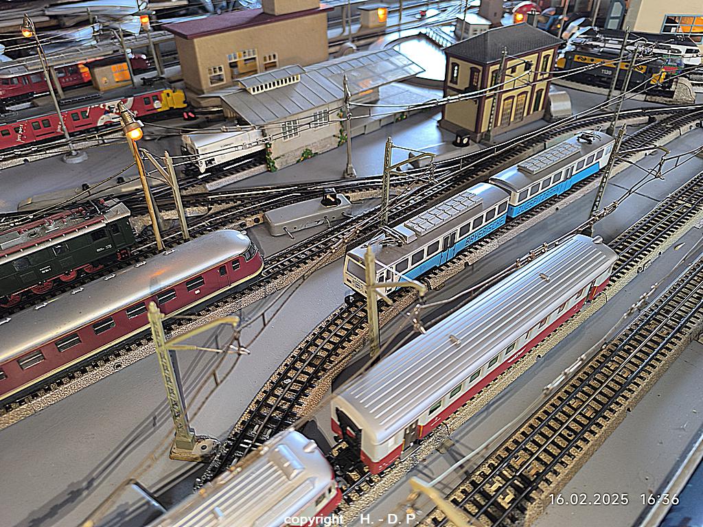 Der 2. Spieltag und die noch folgenden stehen unter dem Motto " Triebwagen und Triebzüge aus dem In - und Ausland zu Gast in Heinhausn Teil 2 " Zu sehen sind Fahrzeuge der Firmen Märklin, Hag und Primex.