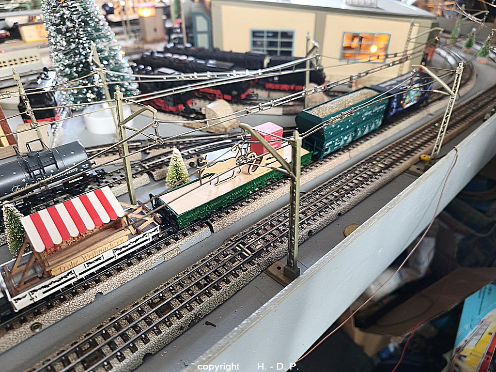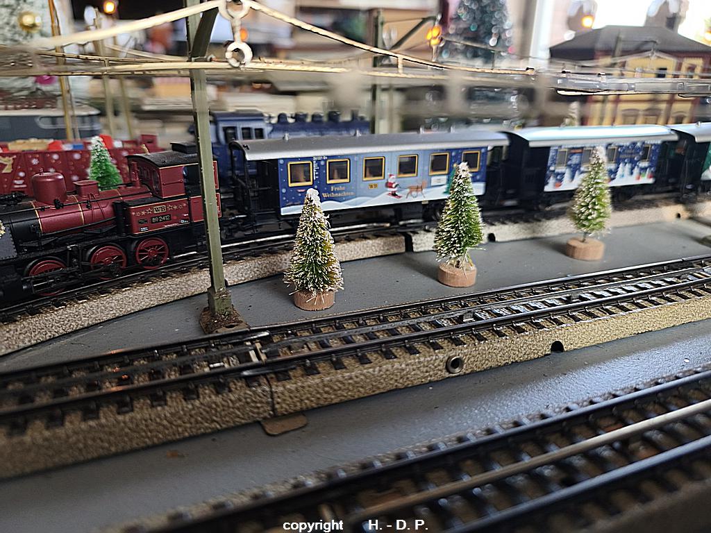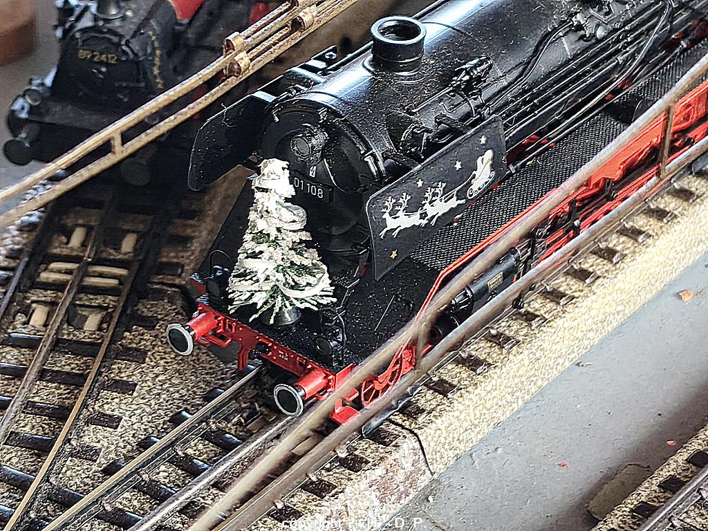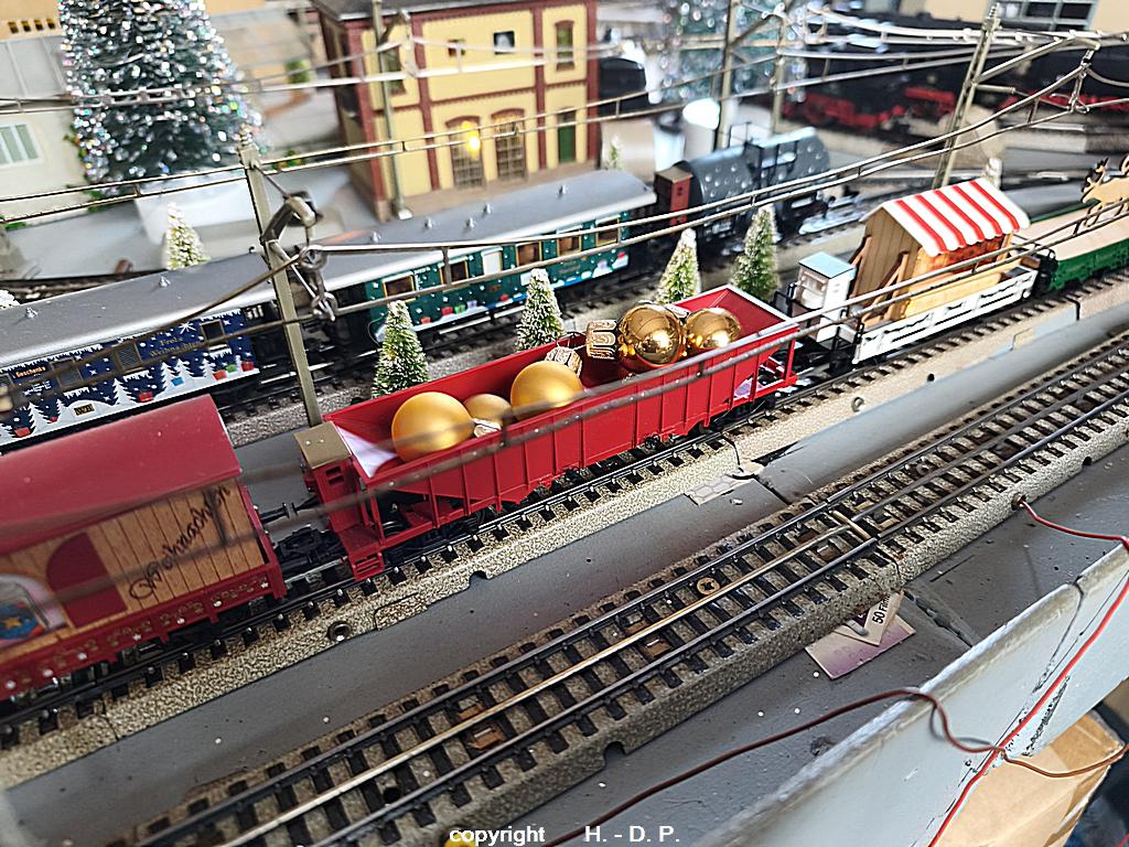 Das Fest steht vor der Tür und hat schon leise angeklopft, so das es an der Zeit ist die Weihnahtszüge, bzw. Züglein um Heinhausen auf die Reise zu schicken. Ein Züglein besteht aus einer T 3 in weihnachtlichem Gewand und das zieht 3 Personenwagen und einen wohl mit Glühwein gefülltem Kesselwagen, damit die Ausflügler immer in guter Stimmung sind und der Alkoholspiegel nicht sinkt.