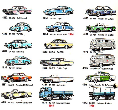 Die Autos des Jahrgangs 1965 / 66. Einige Autos stehen schon länger in den Katalogen, so das ich leider nicht weiß welches Auto in welchem Jahr auf den Markt gekommen ist.