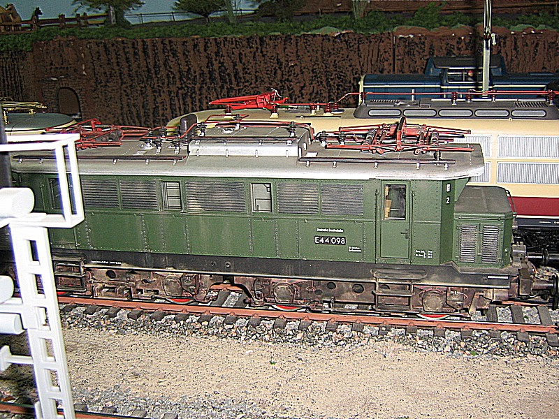 Zu sehen gab es 2 große Anlagen, eine in Spur 1 und eine in Spur HO. Wobei man sagen muß das beide Anlagen noch nicht fertig sind, so fehlt bei der Spur 1 Anlage noch die Oberleitung, nur die Maste stehen bereits. Fangen wir mit der Spur 1 Anlage einmal an.