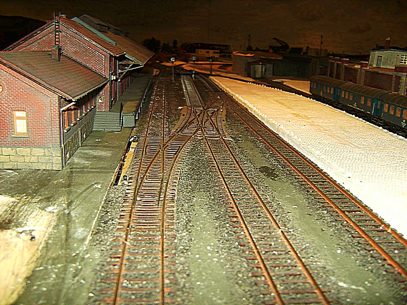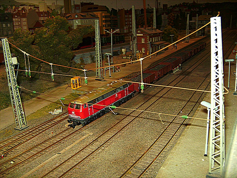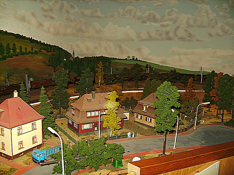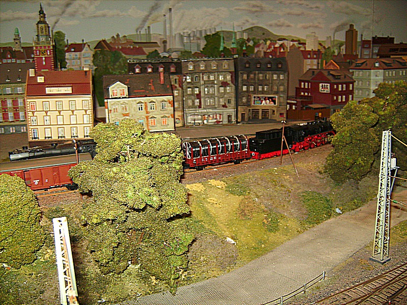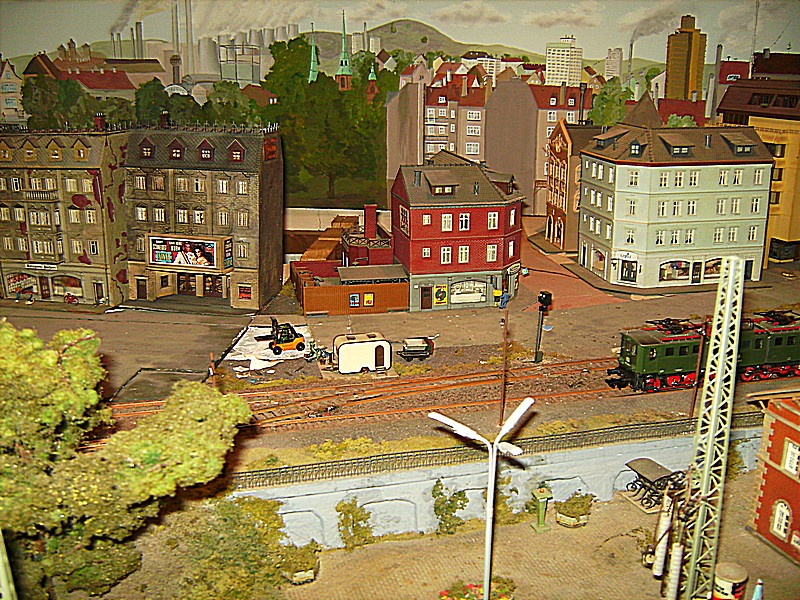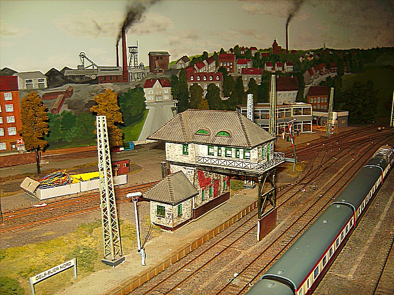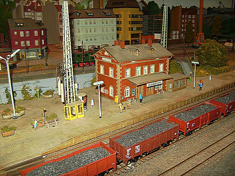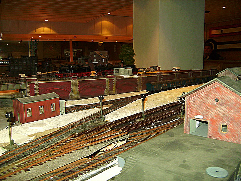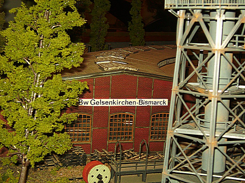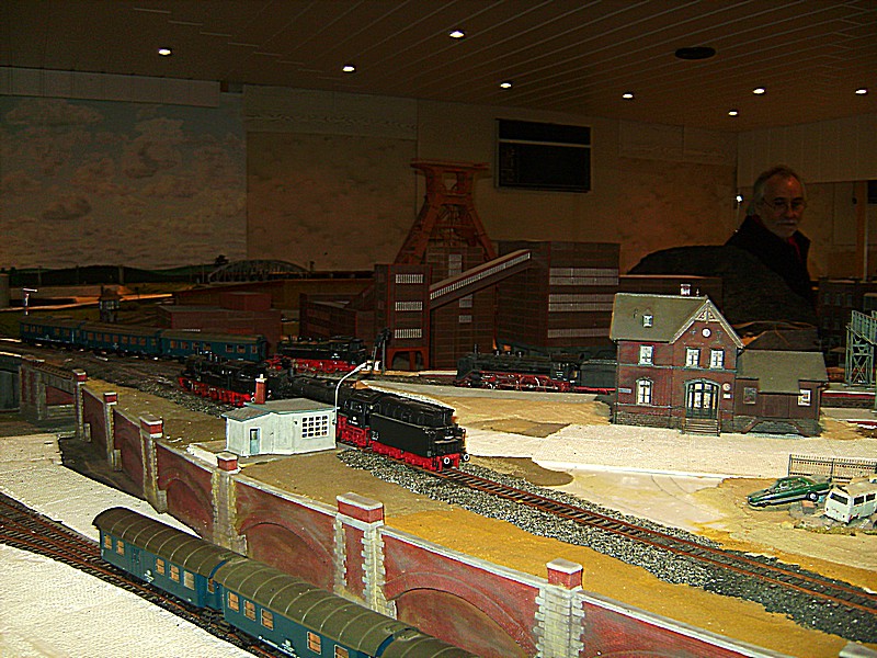 Weiter geht es mit der HO Anlage. Diese Anlage war in weiten Teilen noch nicht fertig, da sie wohl neu aufgebaut werden mußte. Wie ich hörte soll die alte Anlage im Untergrund in den letzten 20 Jahren sehr gelitten haben, so das ein Neuaufbau nötig wurde. Auch wurde die Anlage von analog auf digital umgestellt was natürlich auch nicht ohne Probleme geht. Trotz dieser Schwierigkeiten liefen aber einige Züge und es gab auch schon fertig gestaltete Dinge, wie meine Bilder zeigen werden. Ganz beachtlich aber war eine Zeche die in weiten Zügen fertig war. Auch das BW von Gelsenkirchen-Bismarck war fast fertig aber noch nicht in Betrieb. Gefahren wurde diese Anlage mit Gleichstrom. Auch der Gleisplan war sehr gelungen und man konnte auf Anhieb nicht sehen wie die Züge fuhren. Insgesamt eine klasse Anlage.