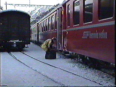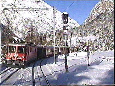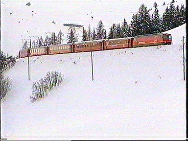 Begleitet ihn auf der Fahrt von St. Moritz nach Zermatt. Ich wünsche eine gute Fahrt. Bitte zurücktreten an der Bahnsteigkante, der langsamste Schnellzug der Welt fährt ab und bitte daran denken, Blumenpflücken während der Fahrt verboten !!!!