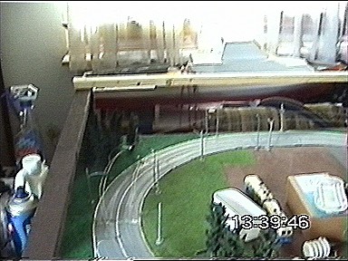 die Vorführanlage vom Faller Car System steht hochkant. links lugt nch die Paul Denker ein SRK Boot hervor