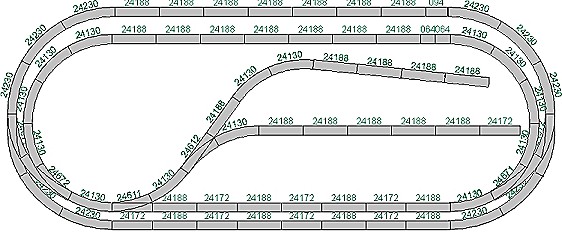Mein Gleisplan ist natürlich sehr einfach, zwei Ovale verbunden mit vier Bogenweichen, und einer Abzweigung zum Lokschuppen.