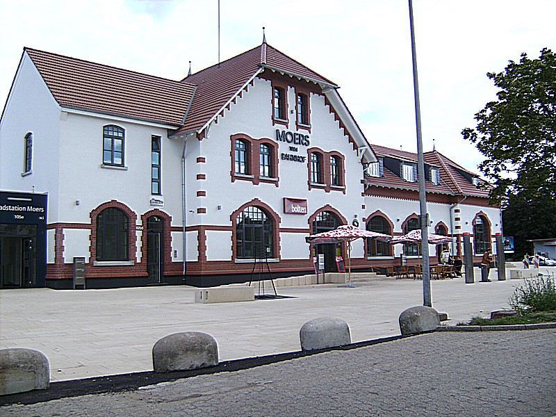 Am Bahnhof angekommen hatte ich doch noch viel Zeit und konnte so einige Bilder von dem neu restaurierten Bahnhofsgebäude machen, welches aber heute der Stadt Moers gehört und nicht mehr der DB. Der alte Bahnhof ist ein richtiges Schmuckstück geworden. Dagegen ist der Aufgang zu den Gleisen immer noch so, vorsichtig ausgedrückt, dreckig wie immer.