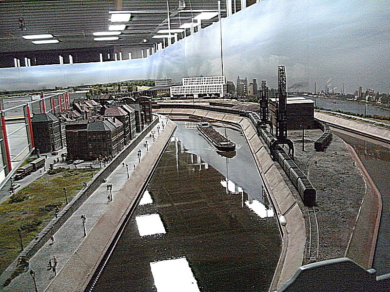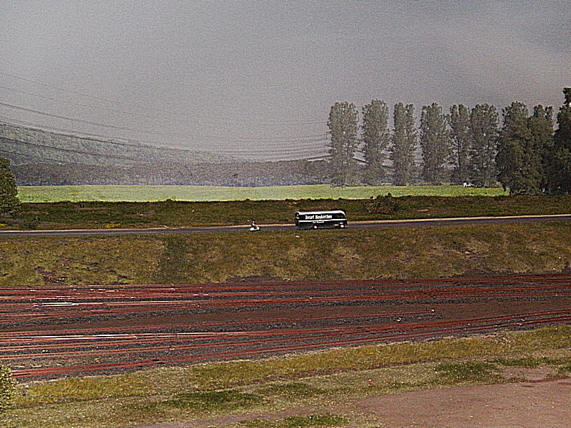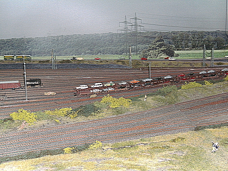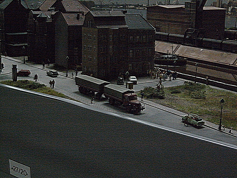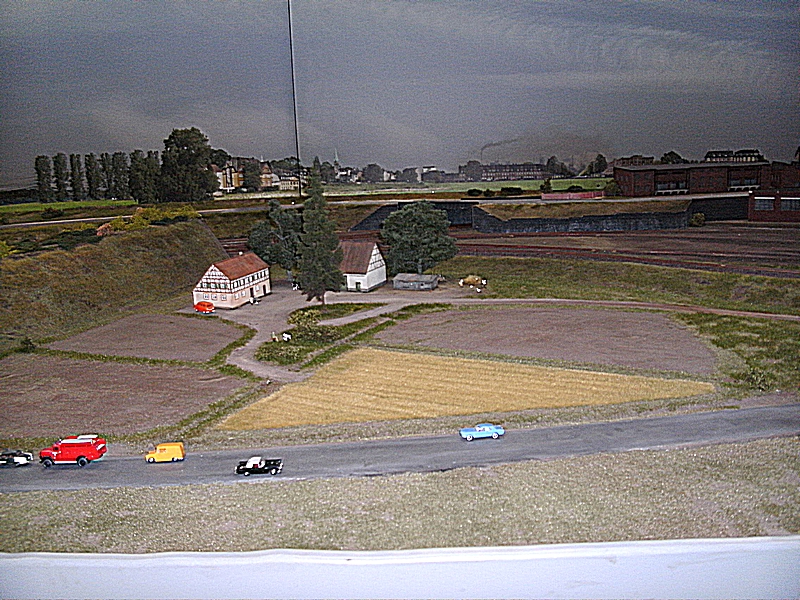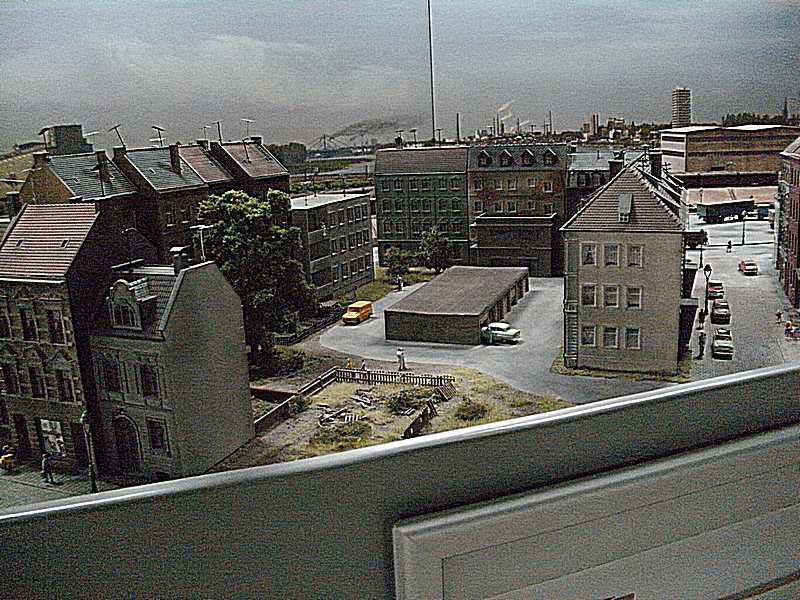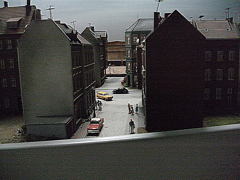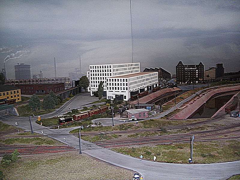 Die Tag / Nachtsteuerung funktionierte heute auch sehr gut, leider blieben beim Nachtbetrieb sehr viele Häuser stock dunkel, ja ganze Stadtteile waren ohne Licht, nur die Straßenbeleuchtung brannte. Auch daran muß noch gearbeitet werden, denn das alte Ruhrgebiet war immer hell beleuchtet. Die Faller Car Autos waren auch nur sehr spärlich unterwegs, es fehlt da nach meiner Meinung der , auch schon in den 60er Jahren, dichte Straßenverkehr. Dagegen wurde die Preiserlein Bevölkerung deutlich aufgestockt, aber es sind immer noch viel zu wenige auf der großen Anlage zu sehen. Was mir besonders aufgefallen ist, das es einige bewegte Figuren zu sehen gab, was besonders die Kinder fast zu Freudenschreien veranlaßte. Diese kleinen Hingucker machen eine Anlage erst so liebenswert und das ist den Machern der MWO sehr gut gelungen. Auch bei den Fabrikanlagen hat sich einiges getan, so werde ich versuchen die alten Bilder als Vergleich unter die neuen zu stellen, falls der Standpunkt ähnlich ist.