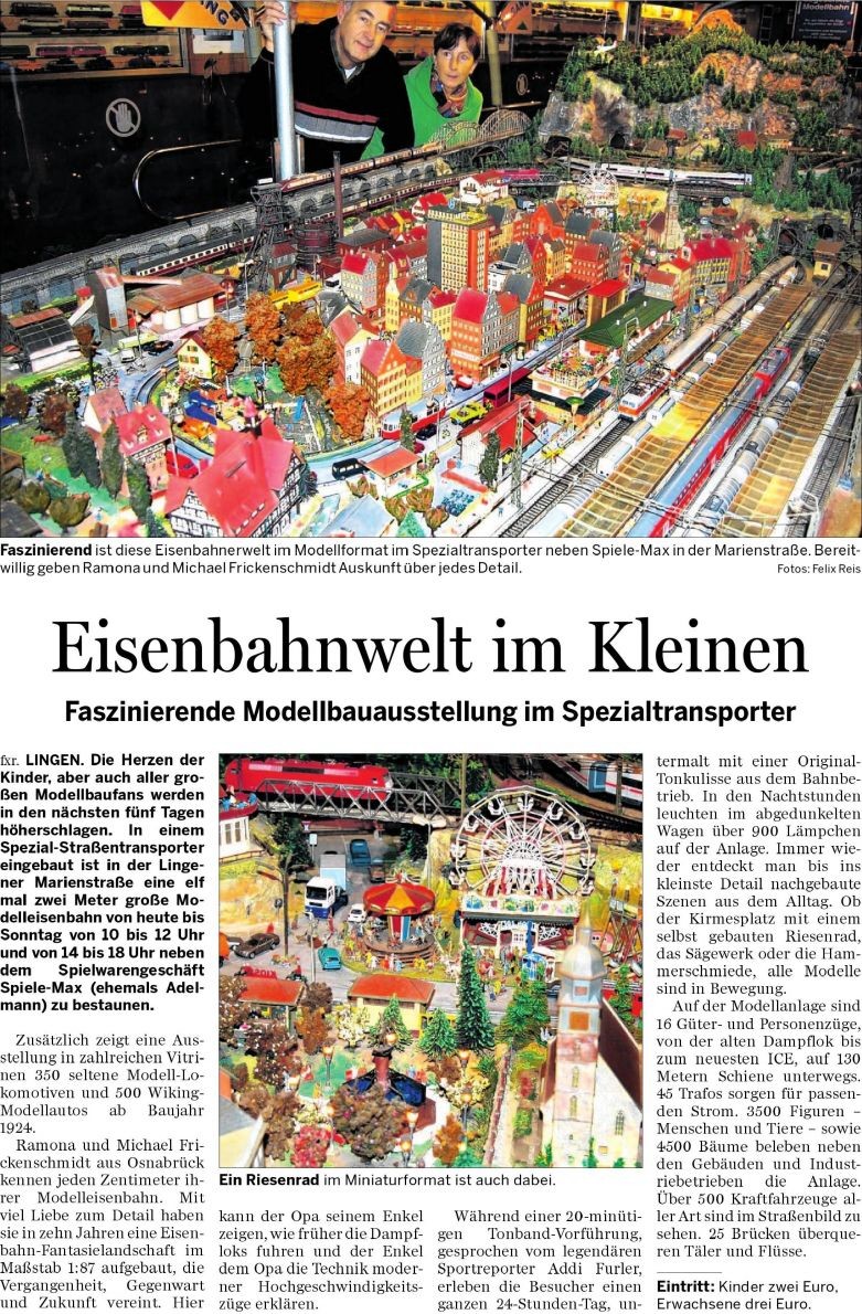 Ich habe gerade eine Mail von Michael Frickenschmidt bekommen. Er hat mir einen Bericht einer Lingener Tageszeitung zugeschickt, den ich Euch nicht vorenthalten möchte.
