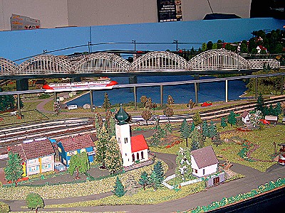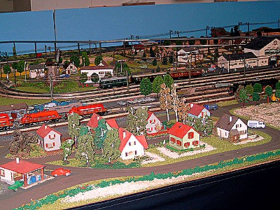 Die für mich persönlich schönste Anlage war die alte Märklin Anlage aus den 50/60er Jahren. Die viel zu kleinen Fallerhäuser und das alte Märklingleis mit durchgezogenem Mittelleiter war einfach nur klasse für einen Nostalgiker wie ich einer bin. Das einzige was bei dieser Anlage nicht wirklich alt war , waren die Autos. Man hatte alte unverglaste Wiking Modelle für das Car System von Faller umgebaut, was dieser Anlage einen ungeheuren Reiz gab. Viele dieser Autos kannte ich noch aus Kindertagen.