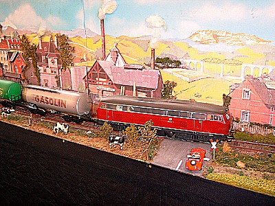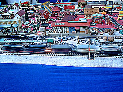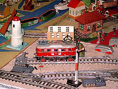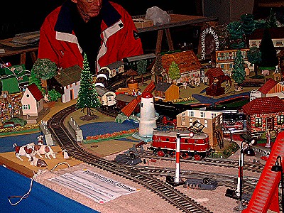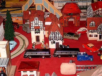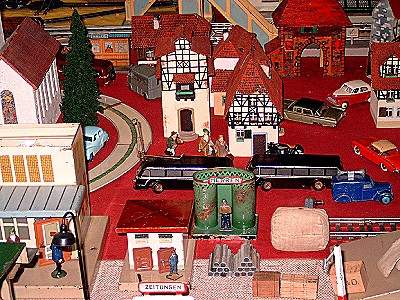 Nun folgen Bilder eines Blechspielzeugsammlers, der alles mögliche auf seiner Anlage drauf hatte, ob es passte oder nicht. Trotzdem gab es einige sehr interessante Modelle zu sehen.