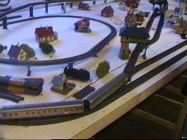 Bei dem Material handelte es sich um jede Menge Bäume, ein Trafo zahlreiche Hausmodelle und 2 D.-Zug- und 1 Güterwagen