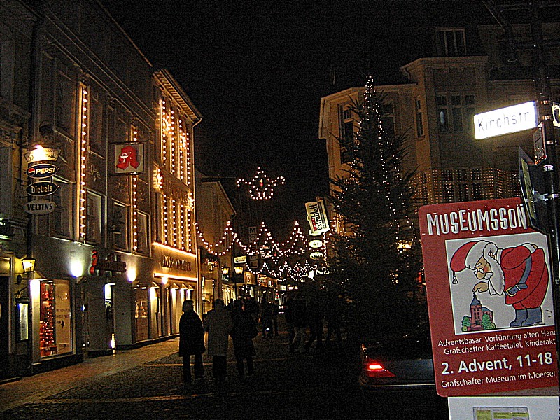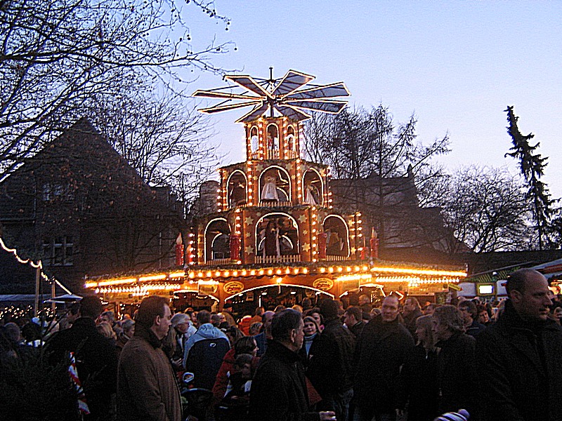 Heute war ich mit meiner Frau an meinem Wohnort Moers, auf dem Weihnachtsmarkt. Leider war da nicht viel von Weihnachten zu spüren, es gab recht wenig Stände die weihnachtliches verkauften. Die Mehrzahl der Buden waren eher auf einem Flohmarkt angesiedelt als auf einem Weihnachtsmarkt. Es gab sogar einige Buden die Waffen wie Schwerter und Messer aus Asien verkauften. Was das mit Weihnachten zu tun hat weiß ich nicht. Zwischen diesen "Flohmarktbuden" gab es noch zahlreiche Ess - und Trinkbuden. So habe ich alleine auf dem recht kleinen Markt 4 Reibekuchen Buden und 3 Backfischbuden gesehen und das waren auch die einzigen, neben den Trinkbuden, die etwas verkauften. Die echten Weihnachtsbuden konnte man an einer Hand zählen. Ich finde das sehr schade.